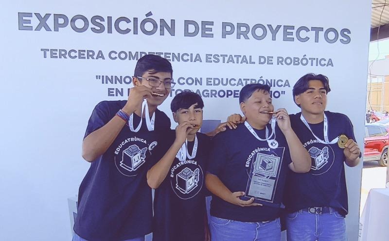 Hermosillo, Sonora; 28 de mayo de 2024.- Con una mentalidad de científicos e ingenieros altamente especializados, pero conscientes de la simplicidad y el acceso generalizado a la tecnología, estudiantes de secundaria presentaron proyectos vanguardistas durante la tercera competencia estatal de robótica “Innovando con Educatrónica en el Sector Agropecuario”.
