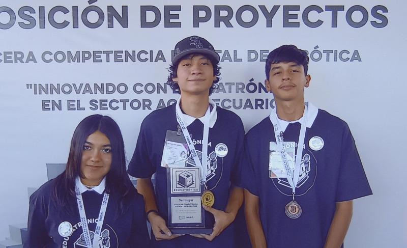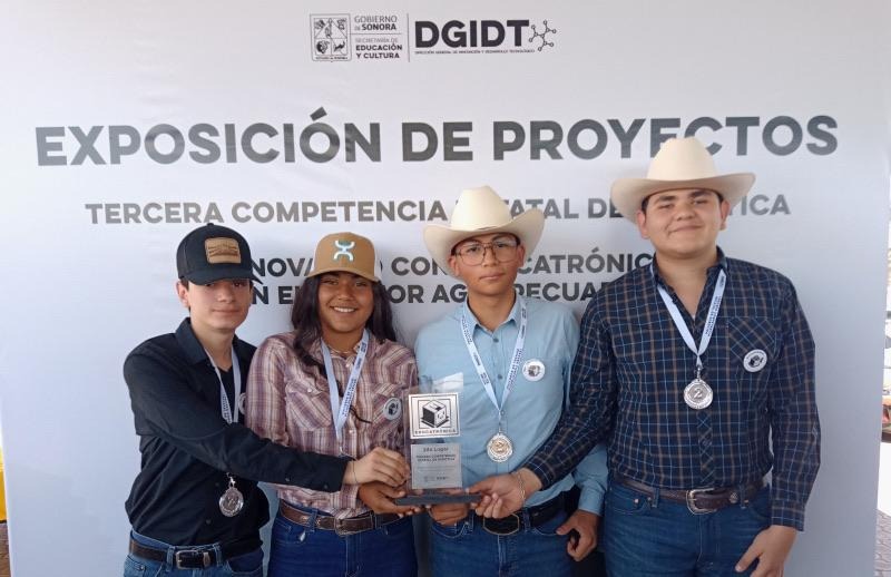 Equipo: “Inova-Tec2” de la secundaria Técnica No. 2 “Juan Rivera Armenta”, de Ciudad Obregón, con el proyecto “Alternativa Inteligente Aplicable al Sector Agropecuario”.