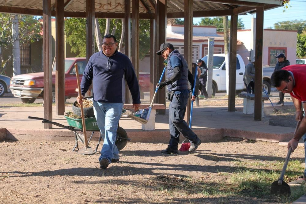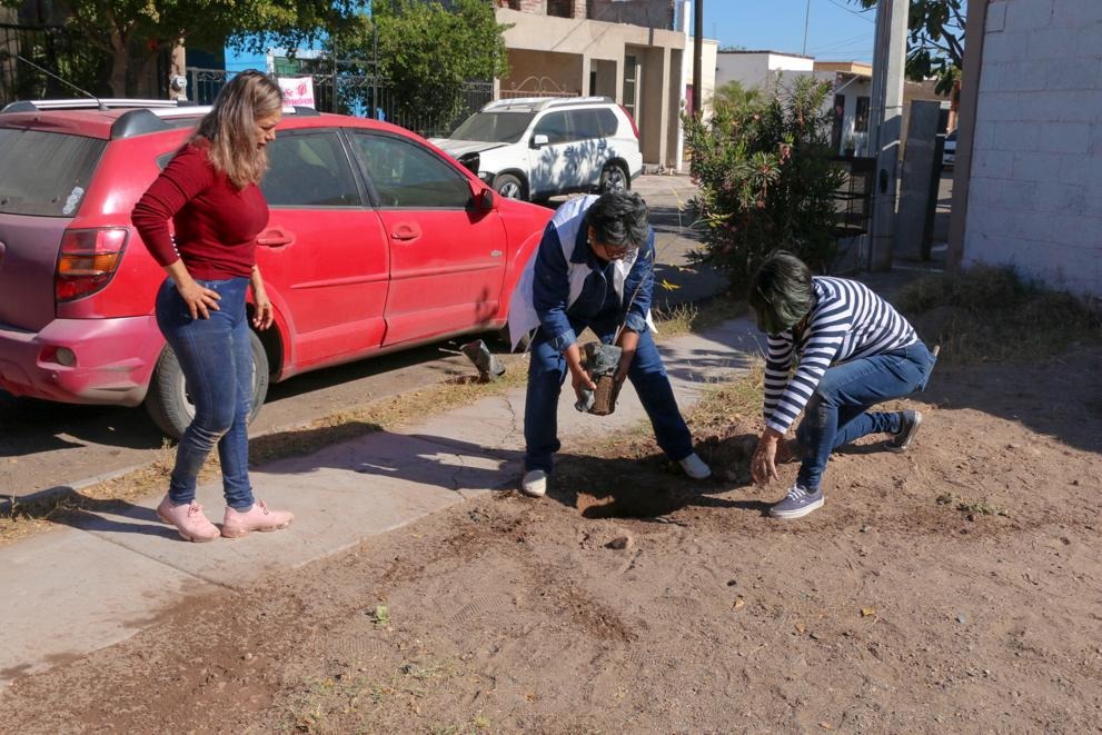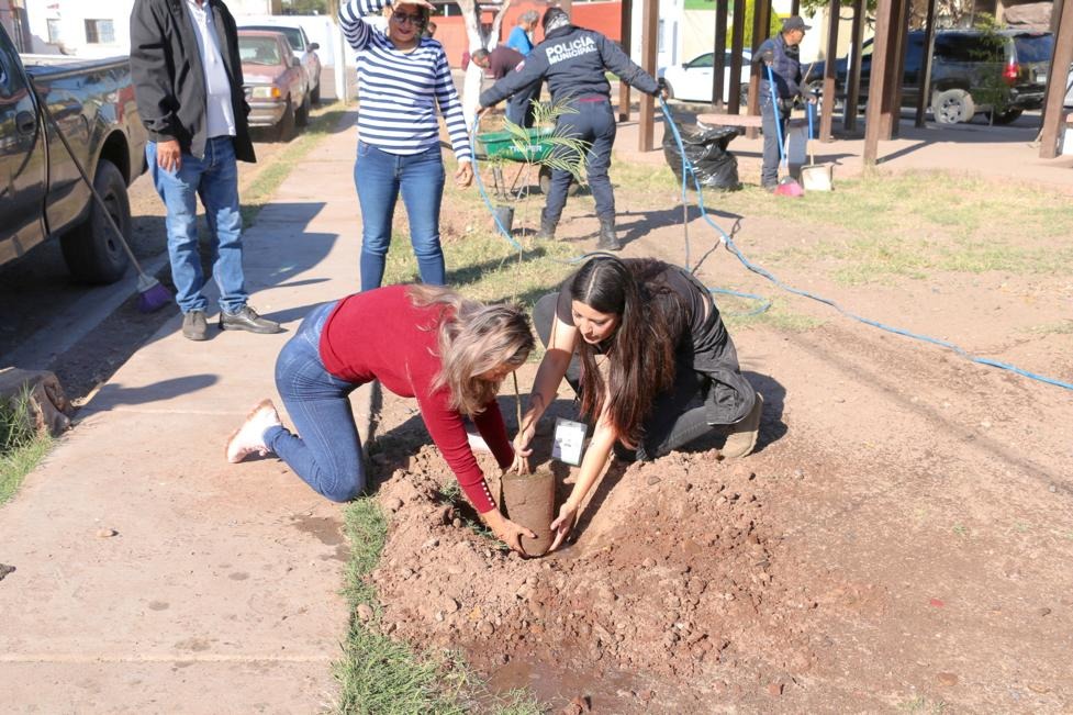 Dominga Bravo Peña, Directora de Programas en Prevención del Delito informó que, durante la mañana de este viernes, se trabajó en la recuperación de un parque público situado en mencionado asentamiento urbano, eliminando maleza y cacharros, además de plantando 7 árboles de la especie neem y tepehuaje.