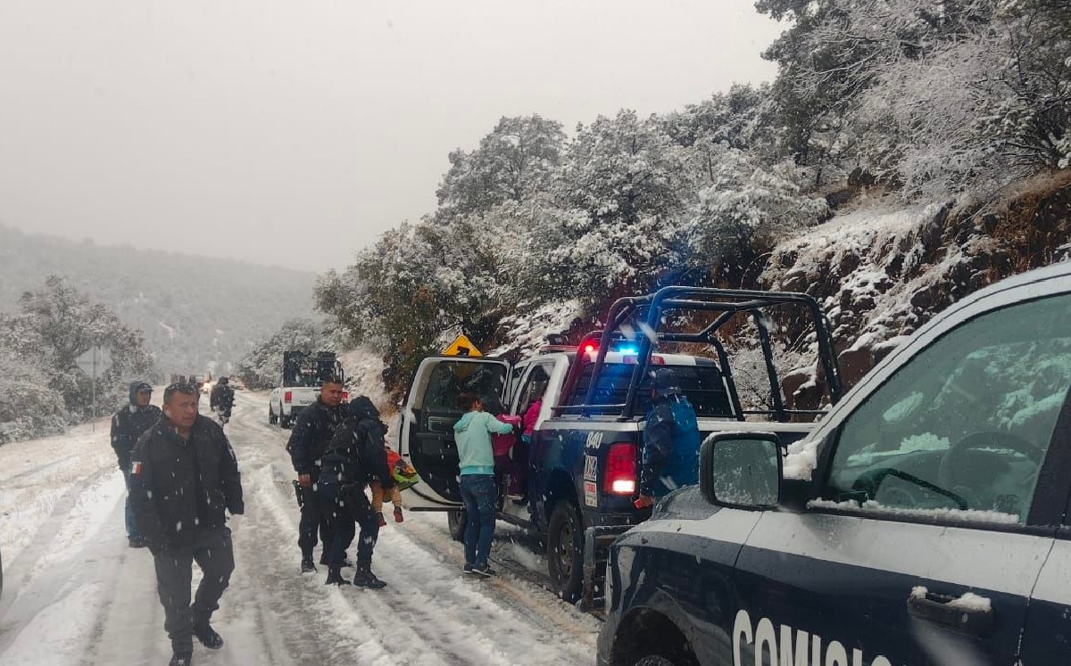 Cuatro mujeres y dos menores de edad fueron rescatados por elementos de la Secretaría de Seguridad Pública del Estado (SSPE) luego de quedar varados en su vehículo por la acumulación de nieve en la carretera que conecta Parral con Guadalupe y Calvo, en la sierra de Chihuahua.