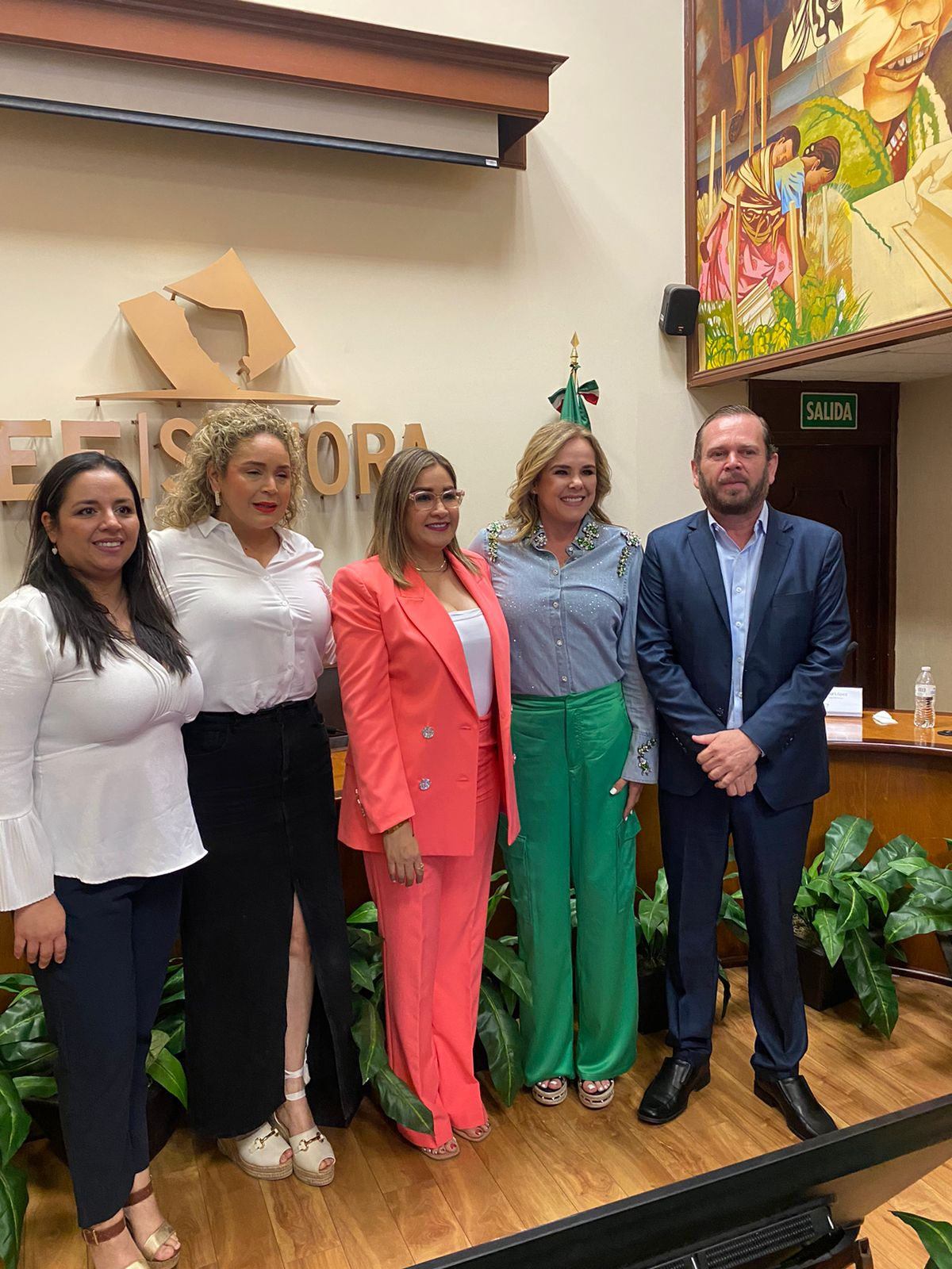 Guadalupe Hernández, representante de la Observatoria Todas MX Sonora; Rosa Elena Trujillo, presidenta de la Comisión para la Igualdad de Género del Congreso del Estado; María Celina Aldana, candidata a regidora en Hermosillo por el PAN; Mirna Leyva, candidata a regidora por el PRI en Nogales; Jazmín Gómez, candidata a diputada local por el PT; Lizbeth Gutiérrez candidata al senado por el PVEM; Elia Sallard, candidata por Nueva Alianza Sonora; Gabriela Félix, candidata a diputada local por MC; María Dolores del Río, candidata a presidenta municipal por Hermosillo por Morena.