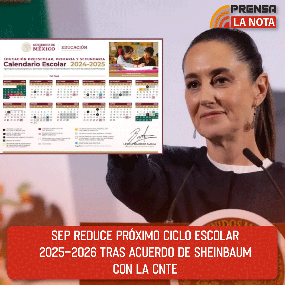 La Secretaría de Educación Pública (SEP) anunció una reducción de cinco días en el calendario escolar del ciclo lectivo 2025-2026, con el fin de cumplir con el ofrecimiento realizado el pasado 15 de mayo por la presidenta Claudia Sheinbaum a los maestros afiliados a la Coordinadora Nacional de los Trabajadores de la Educación (CNTE).