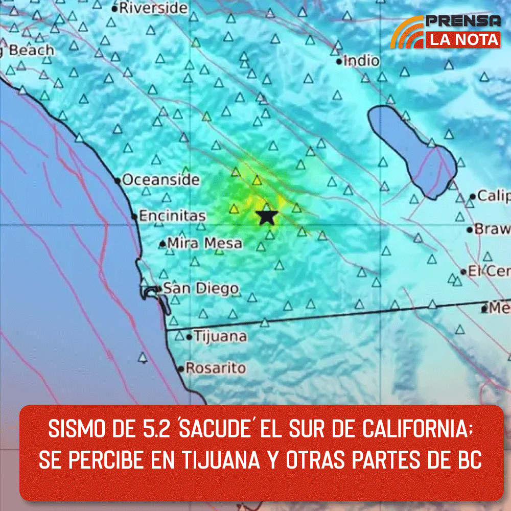 Un sismo de magnitud 5.2 se registró la mañana de este lunes 14 de abril con epicentro al sur de California, en Estados Unidos, el cual incluso fue percibido no sólo en Los Ángeles y San Diego, sino también en territorio mexicano, en los municipios de Tecate, Tijuana y Ensenada, en Baja California.