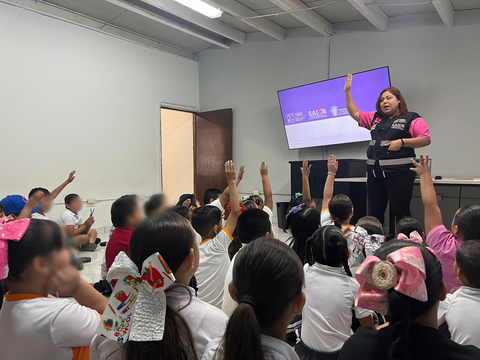 Hermosillo, Sonora, 26 de junio de 2024. En contacto directo con la ciudadanía la Secretaría de Seguridad Pública a través del Sistema Salva, refuerza las acciones de prevención del delito de violencia familiar y de género durante la temporada de verano.