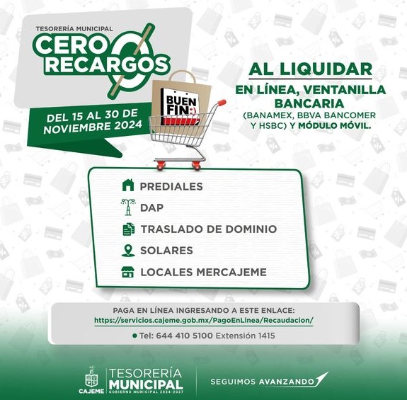 ¡Llegaron los descuentos del #BuenFin a Tesorería Municipal! ¡Aprovecha! Del 15 al 30 de noviembre 2024