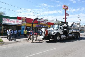 Trabajos de reparación de infraestructura sanitaria por Blvd. Ramírez entre Tabasco y Coahuila.