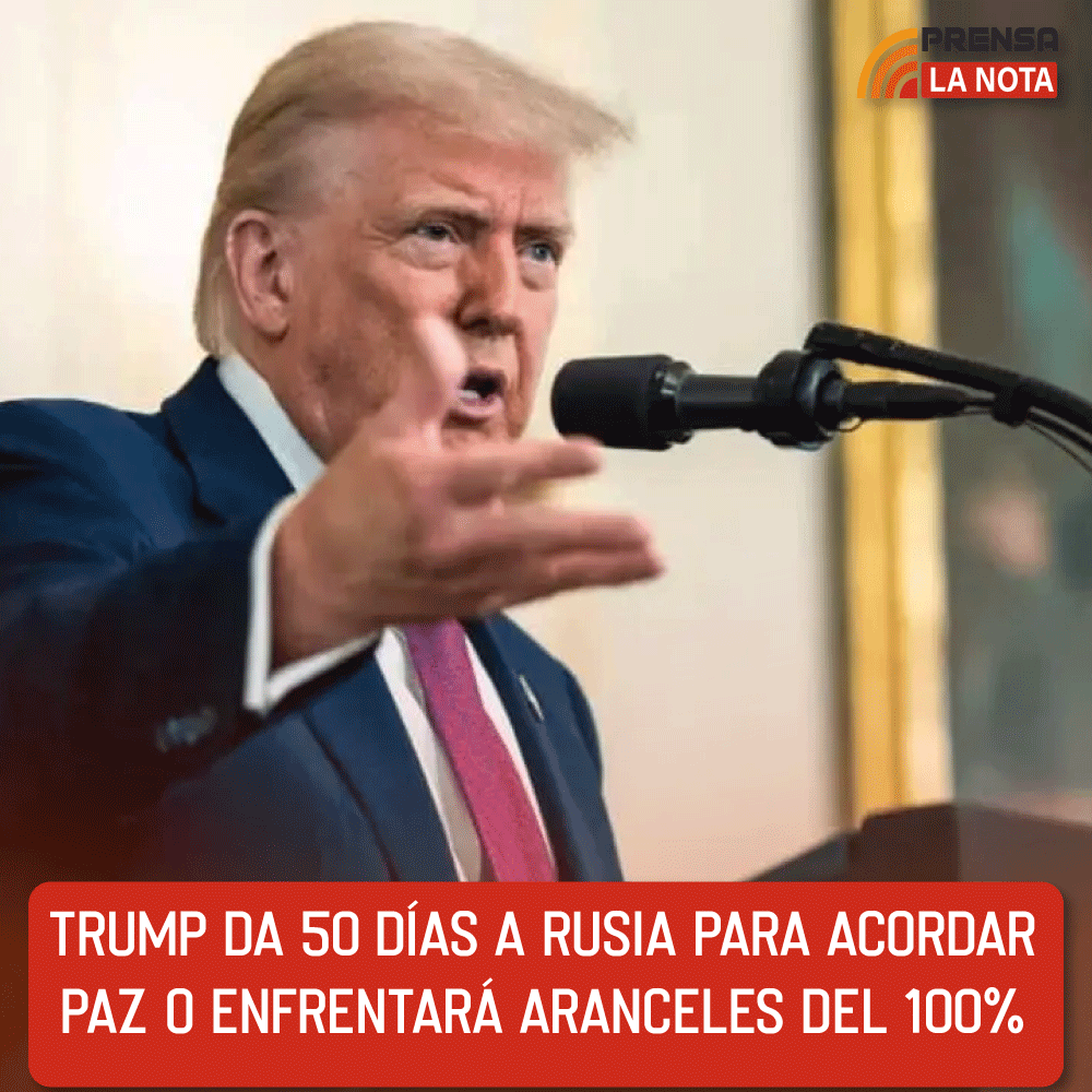 El presidente de Estados Unidos, Donald Trump, amenazó este lunes con imponer aranceles de hasta el 100% a Rusia si no se concreta un acuerdo de paz con Ucrania en los próximos 50 días.