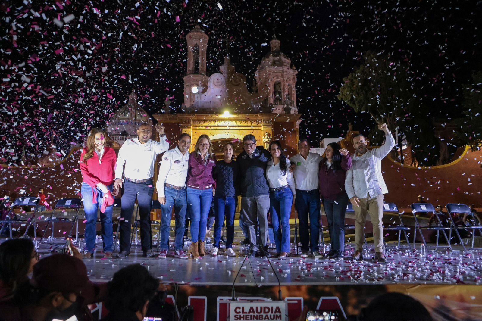 Claudia Sheinbaum estuvo acompañada en Guadalupe, Zacatecas, por Ana Luisa del Muro, candidata a Diputado Federal por el distrito 4; Pepe Zaldívar, candidato a la Presidencia Municipal de Guadalupe; Carlos Puente Salas, candidato a diputado plurinominal; Geovanna Bañuelos, candidata plurinominal al Senado; Néstor Núñez López, coordinador de la Segunda Circunscripción y Eli Cervantes Rojas, delegado estatal.