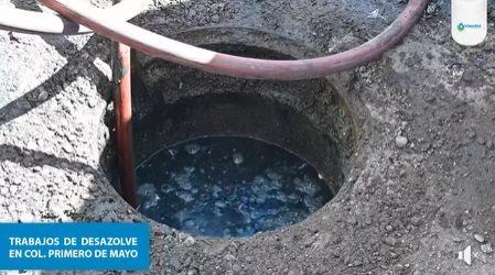Este miércoles, equipos de desazolve, y cuadrilla de reparaciones realizaron tareas de sondeo y cambio de descargas en la Colonia Primero de mayo.
